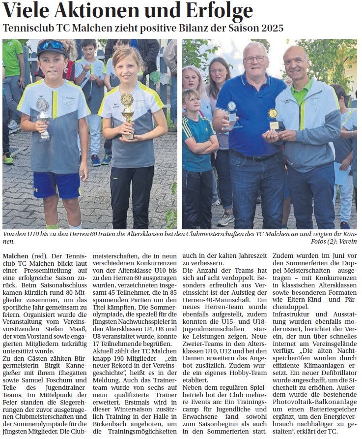 Der Hessische Tennisverband berichtet auf seiner Homepage vom Vereinsberatungsgespräch im Oktober beim TC-Malchen.